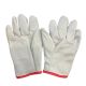 Luva de segurança confeccionada em vaqueta na palma, reforço externo de costura no dedo polegar, anelar e médio, reforço interno na palma, dorso em raspa com elástico para ajuste.