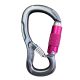 Mosquetão HMS (pera) com trava automática twistlock de três movimentos e gatilho interno que aprisiona uma alça de corda, ou de fita, próximo à sua base.