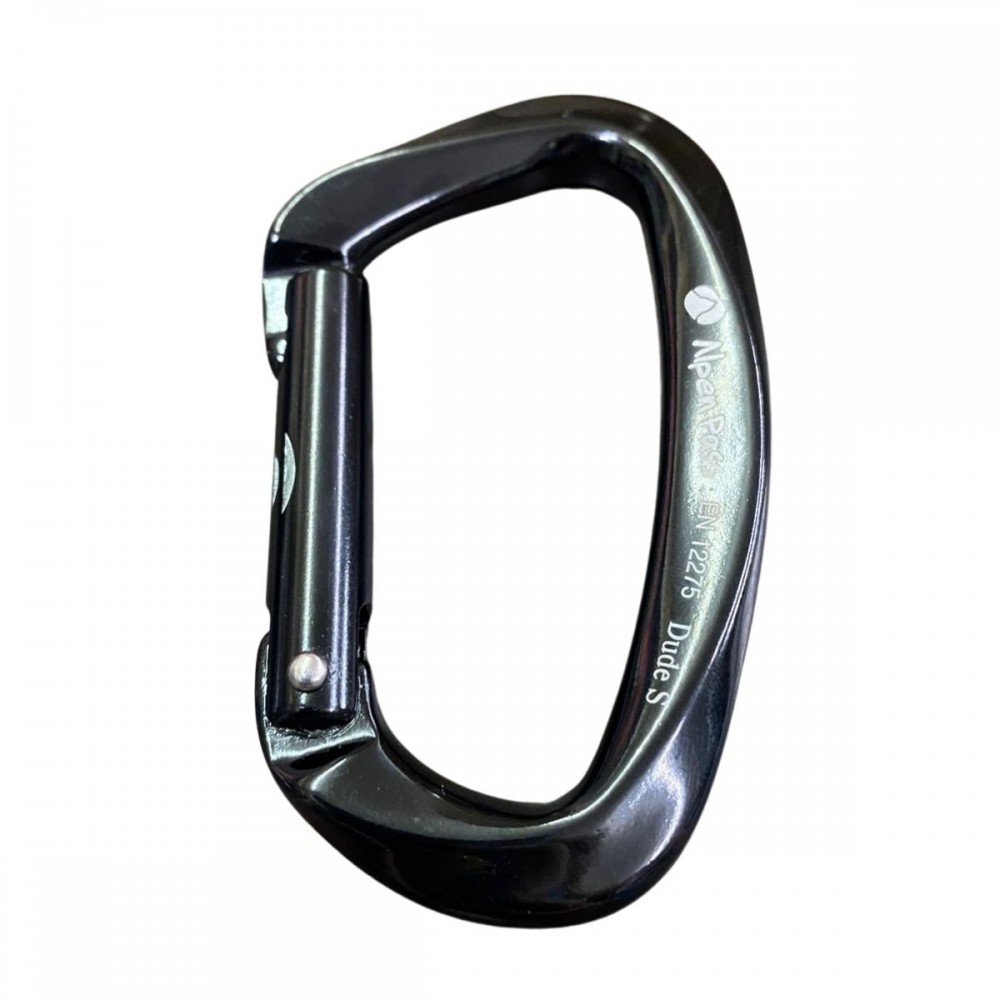 Mosquetão formato D com gatilho reto, sem trava, fabricado em duralumínio 7075-T6, com sistema keylock de nariz e gatilho. Um modelo muito leve, com acabamento impecável.
